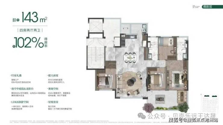 亮点:户户天空浮院、独梯独户、南北双入户,下叠赠南北双院/地下室,上叠享多花园设计,得房率约155%。