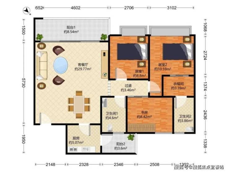 ✅高清户型图电子档(标注尺寸+采光分析+公摊面积)
