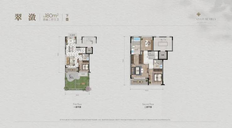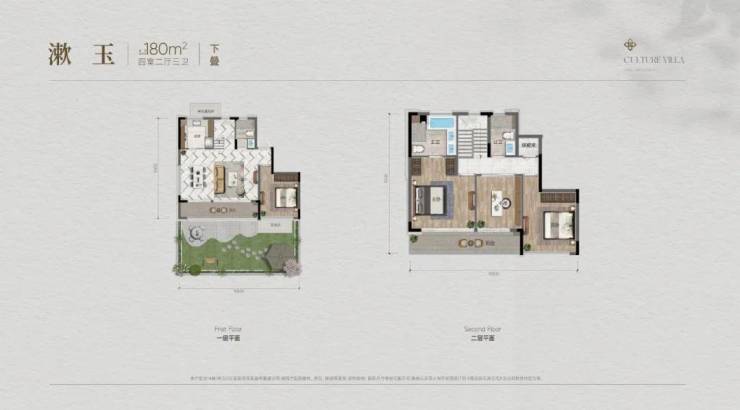 下叠主力户型约180㎡四房三卫,大面积落地玻璃,户型窗墙比超60%,通透敞亮;每户均带南向庭院(约50-60㎡,部分可达100㎡),并创意性做了地下空间。