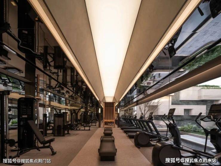 其中令人惊艳的,莫过于板块内首个“无界泳池”——通过开放式结构,与下沉庭院水系连成一片,游泳时仿佛与自然景观融为一体,再加上旁边的健身房、瑜伽室,足不出户,就能实现每周的“都市微度假”。