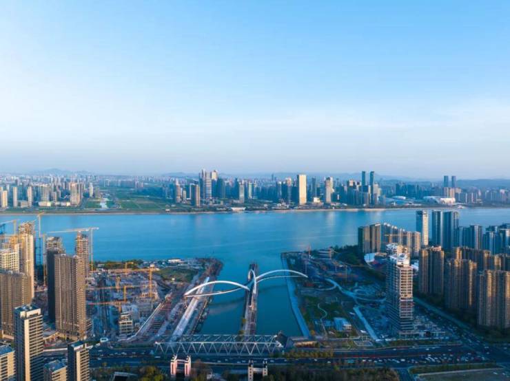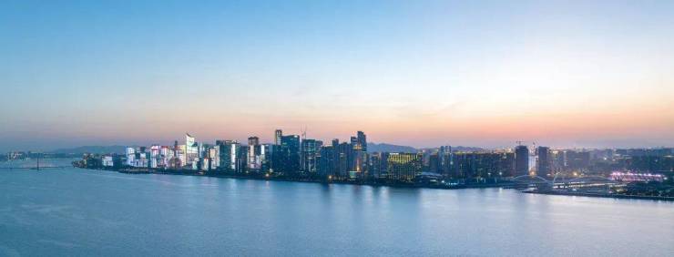 当站在项目样板间270°巨幕转角厅前,首先映入眼帘的就是开扬澎湃的江景。江景之外,汇西两幢“傲世独立”的扎哈风格写字楼和酒店、人行景观桥,甚至之后的摩天轮,均定格窗前。再将视线拉远,对岸亚运村、钱塘湾总部基地同样清晰可见。建筑与自然,共同谱写了一曲盛世赞歌。