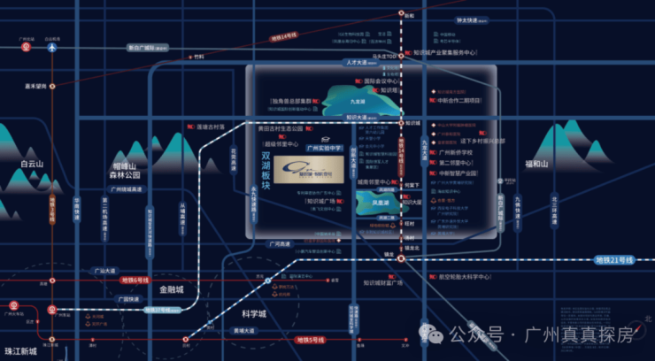 地铁14号线知识城支线接驳21号线通达天河,未来还有37号线(规划中),同样直通天河、越秀等核心区。