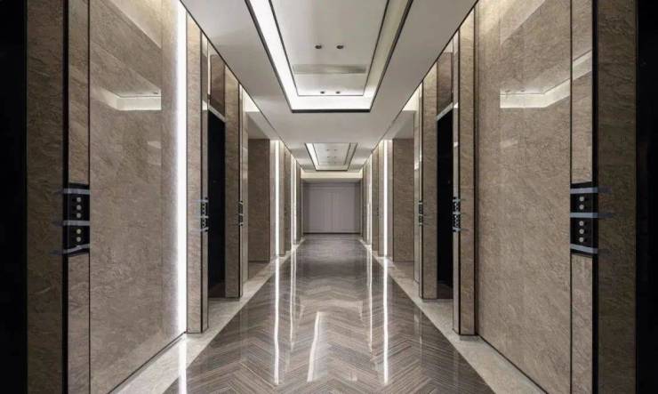 这里有18000元/㎡的装标,有从瑞士V-ZUG、德国汉斯格雅、唯宝到伯格曼的全进口厨卫,有从墙上的雀眼木、软硬包到地上卡拉拉白大理石的铺装,连公区装标都高达2万/㎡,电梯厅全石材铺装,楼层公区选用与深圳湾一号同款的阿曼玫瑰石材。