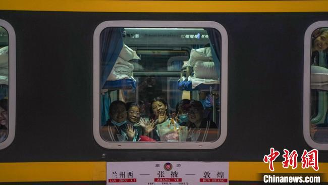 中新网兰州6月16日电 (刘超 康娜)15日22时34分,兰州铁路局“环西部火车游·美丽铁路”红色研学专列从兰州西站开行。该趟研学专列以“红色记忆丝路敦煌”为主题,载着400余名来自兰州市第九中学的同学开启为期5天的丝绸之路研学时光。