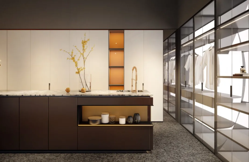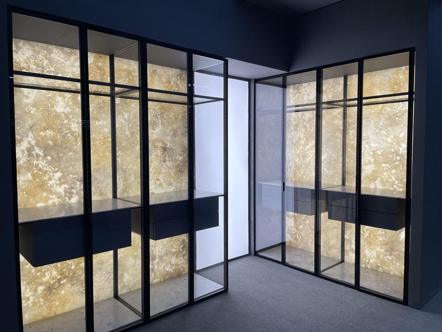 艺术与质感并存的设计展示,解锁家居时尚新趋势,近百款新品首次公开亮相,成为展位上万众瞩目的焦点,酷炫逼真的纹理和丰富的花色,为广大设计师提供更多家居创意设计灵感。更与知名衣柜品牌coco合作,高端定制了一系列岛台及衣柜等展示。