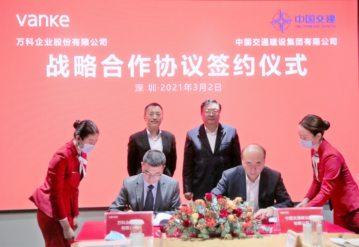 焦点财经讯 3月2日,中交集团与万科集团在深圳签订战略合作协议,中交集团党委书记、董事长、总经理王彤宙,万科集团党委书记、董事会主席郁亮出席签约仪式。