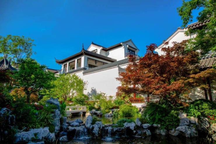 罗汉松、铁冬青等各种花草树木,一齐呈现全园丰茂,四时如画的美景。行走其中,可享闲暇、养生、逸乐、观赏之趣。驻足绿意之中,微风轻轻拂面,鸟鸣啾啾入耳,山间云气氤氲,古树衬着白云,恍若仙境。居于此,一种闲适散淡的生活气息缓缓开来,疗愈身与心灵,实现真正意义上的心境回归。