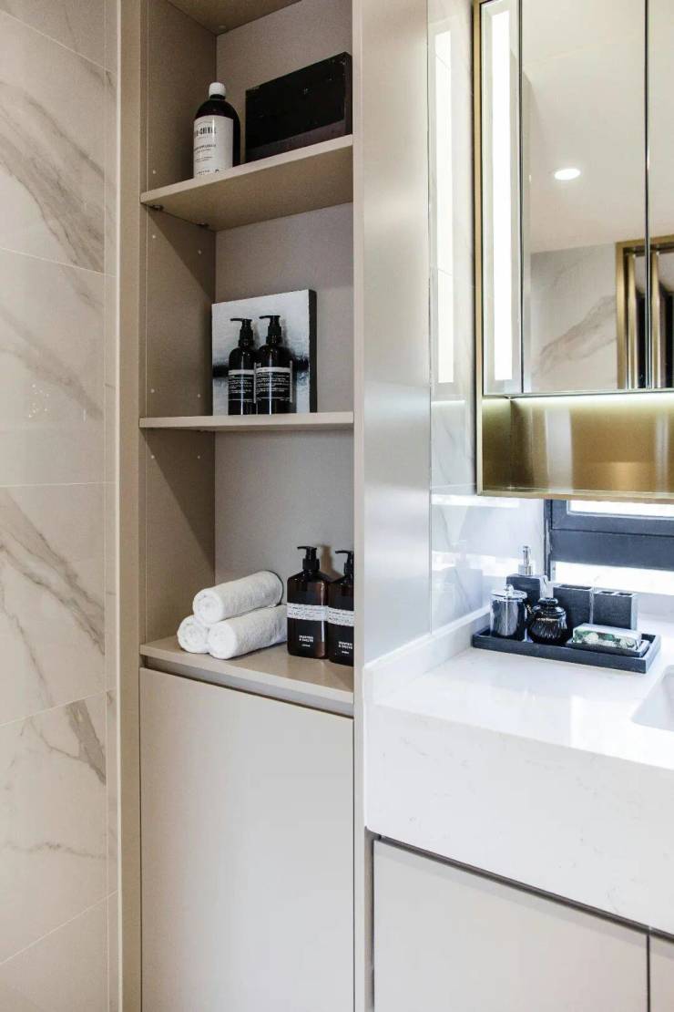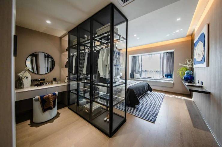 不同空间的衣柜都量身订造,标准化产品也有着打磨后的精致感。每一处都有着不同材质、不同功能、不同灯光等设计,为居住提供了更多的可能。