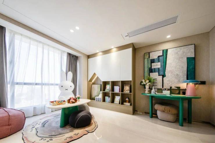 儿童房承载了孩子的童年时期,这里没有复杂的装饰,同时留有足够的自由空间,给儿童房和孩子一起“成长”的余地。