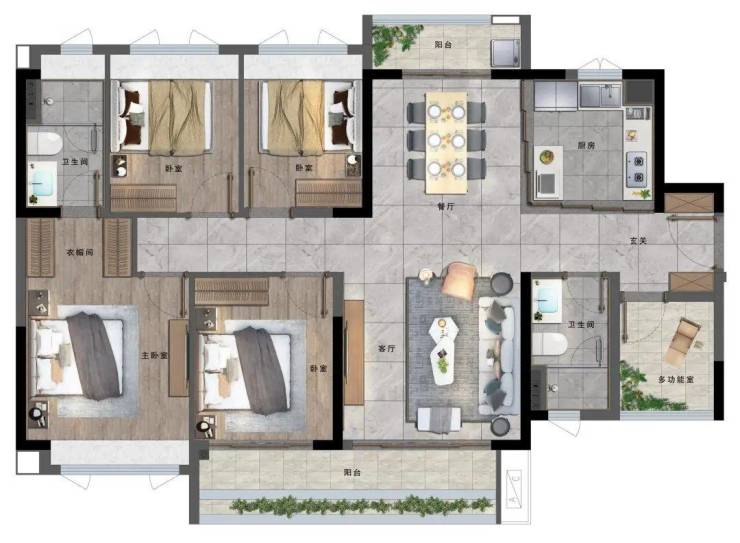 C户型 建面约129㎡ 4房2厅2卫