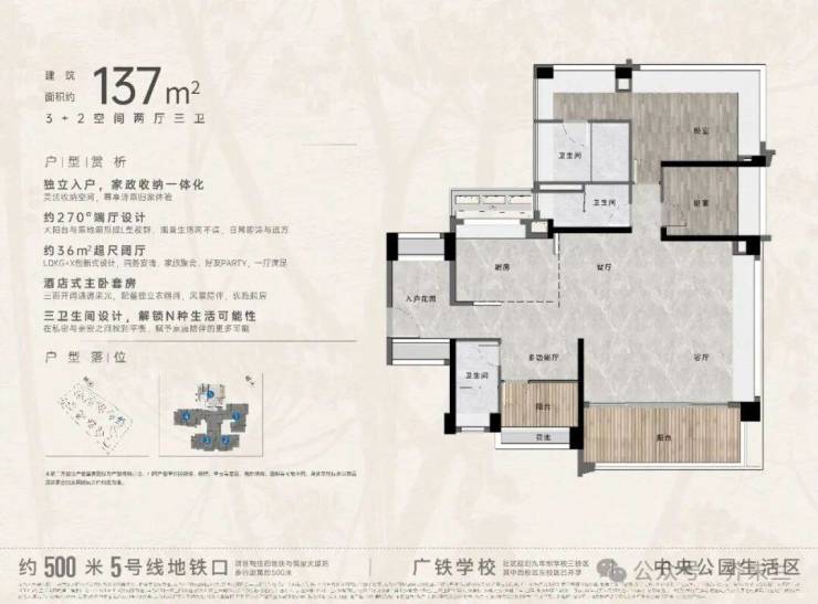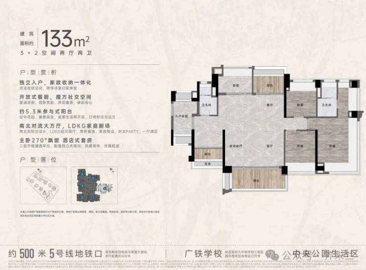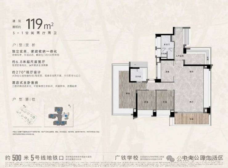 2地铁3站点:2地铁(13/5号线),3站点(夏园、南岗、保盈大道)环绕,4站到鱼珠,5站到天河,不换乘直达珠江新城;