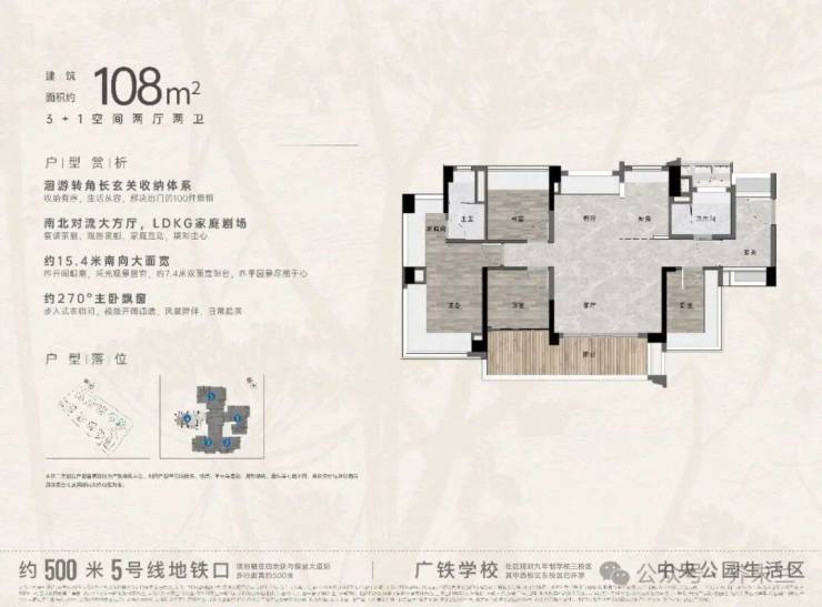 多龄段优质教育:引入公立九年制学校广铁一中铁铮学校、规划3个校区,超万个学位,2021年-2022年连续两年广铁一中高优率超9成,其中铁铮学校西校区、东校区已开学;规划6所幼儿园,其中一所公立幼儿园已开学。