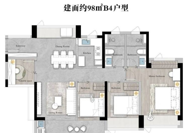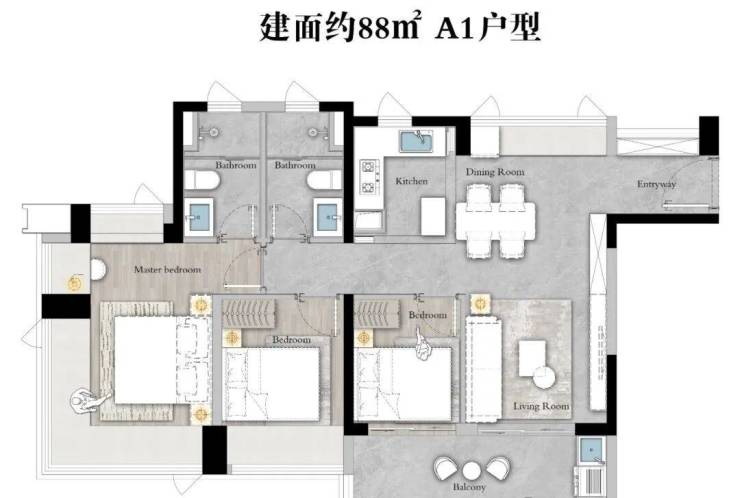 产品涵盖建面约88-108㎡三至四房,是科学城首个全面采用建筑新规设计的项目,据悉户型使用率接近100%。