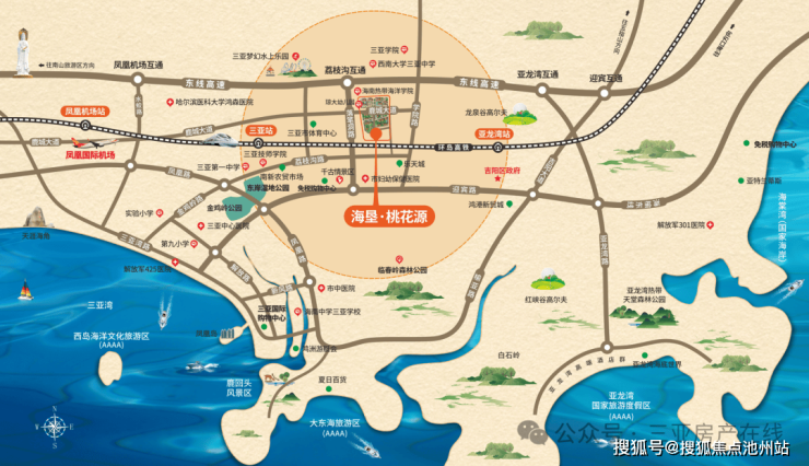 交通配套方面,项目距离环岛高速荔枝沟互通仅约800米,三亚动车站约7公里,三亚凤凰机场约17公里。项目临街有公交站,目前有4条公交线路(1路、21路、3路、33路),可到达解放路、市中心医院、汽车总站、动车站、凤凰机场、海棠湾等地。