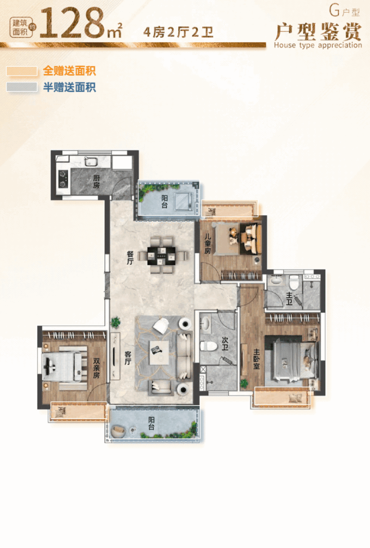 户型设计是项目的一大亮点,主要有101-143㎡的户型,主打户型方正、动静分离、采光充足的三居和四居。