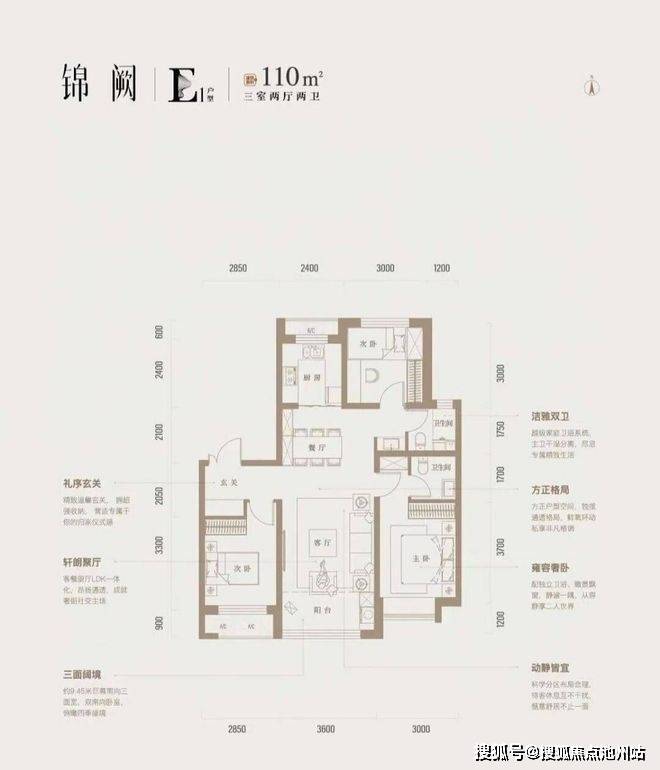 主推:两室90㎡,三室110㎡,四室132㎡