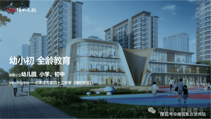 楼下就是石家庄市第42中学·锦和校区,享小学初中九年一贯制教育体系。区域TOP级学校加持,42中强大师资和共享资源,打造双学校配置,为孩子教育保驾护航。