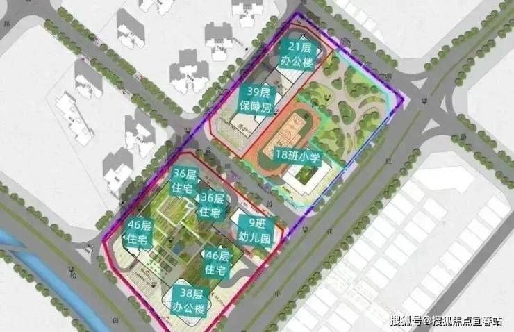 自带社区幼儿园,东北面规划教育设施用地(18班小学);