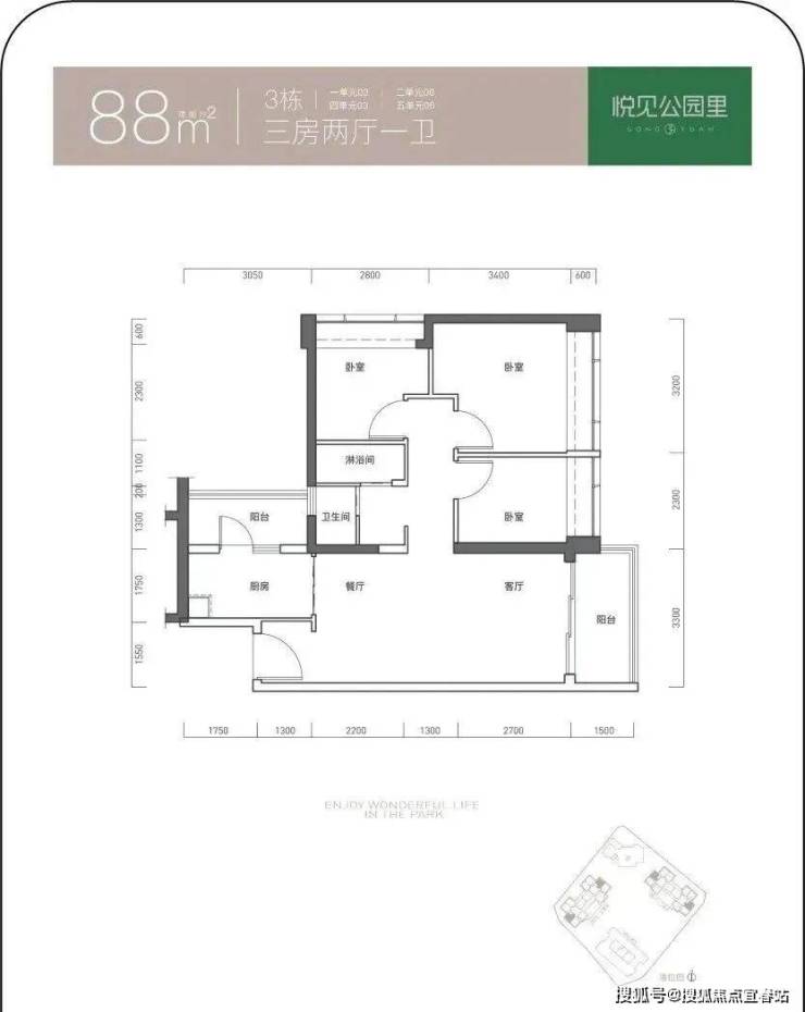 88㎡的3房2厅1卫,折后总价332-355万/套,单价3.79-4.04万/㎡。