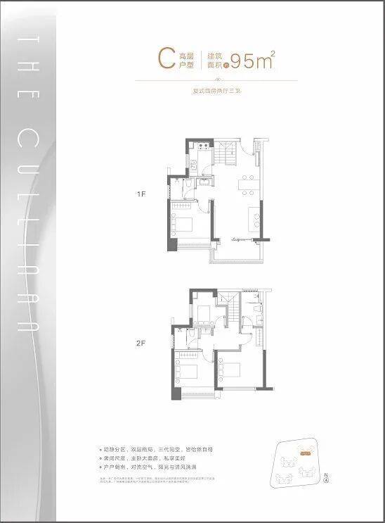 总建筑面积约10.6万㎡,设有4栋高层复式洋房,建面为85-120㎡,采用错式排布,全南向设计,通风采光俱佳,带精装交楼。