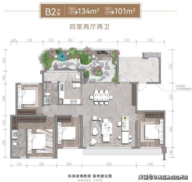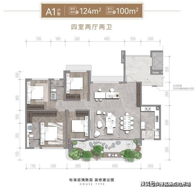(面积)建面122-136㎡ 四房双卫