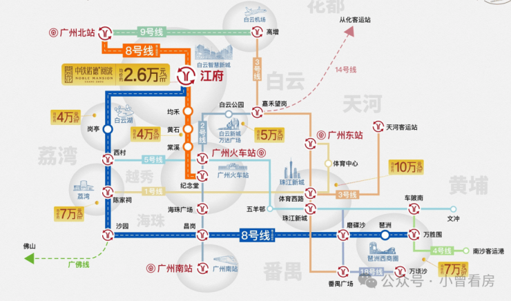 家楼下就是双地铁8号线北延段/北延段支线【江府站】,目前工程进度2%,未来坐地铁6站珠江新城CBD,10站北京路商圈、直达广州市政府,每年达50-100万人流量。