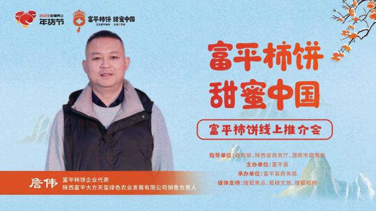 下午2时,伴随着富平县宣传片的播放,“富平柿饼 甜蜜中国”线上推介会正式拉开帷幕。