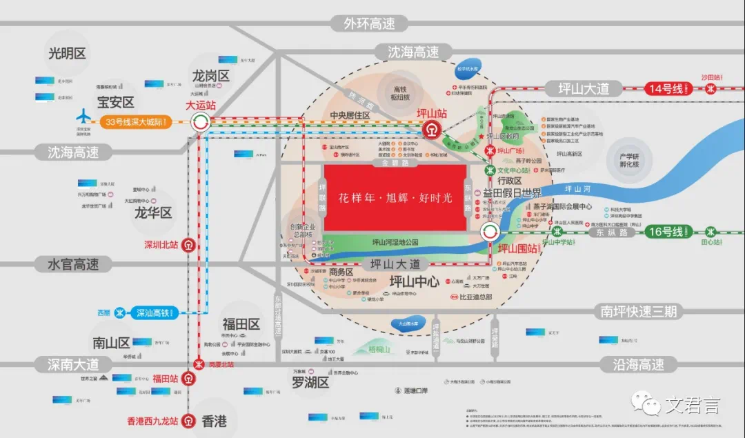 目前,距离花样年·旭辉·好时光最近的地铁是深圳地铁14号线和16号线——坪山围地铁站。