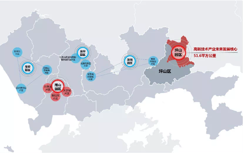 坪山高新区是深圳高新区五大园区中规划面积较大、创新潜力较大、产业特色最鲜明的园区,将成为深圳国家高新区两大核心园区之一,以建设世界一流高科技园区为目标,打造新能源、生物医药、新一代信息技术产业等三大千亿级产业集群,未来将会成为“广深科技创新走廊”重要节点之一,也是中国“硅谷”。