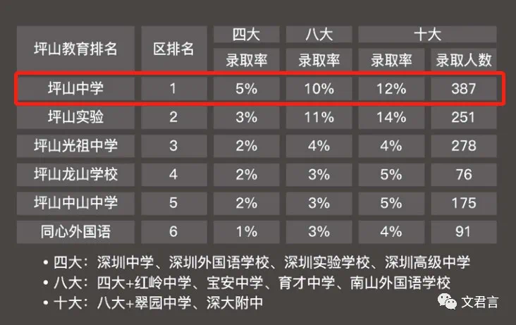 其中,坪山中学创建于1949年秋,学校现有36个教学班,1800名学生,教职工160人,是坪山区升学率TOP1的公办初中,曾获评“国家重点课题实验基地学校”、广东省一级学校、深圳市办学效益先进单位、广东省现代教育技术优秀实验学校等荣誉。