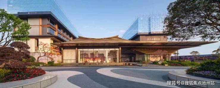 云启钱湾望潮洋房示范区是杭州首个“诗意东方”建筑风格示范区,主大门造型灵动飘逸,融合了中式传统建筑的庑殿金顶、建筑斗拱、山水映画的形意结合。打造了长约50米、高约10米的东方气派门仪。