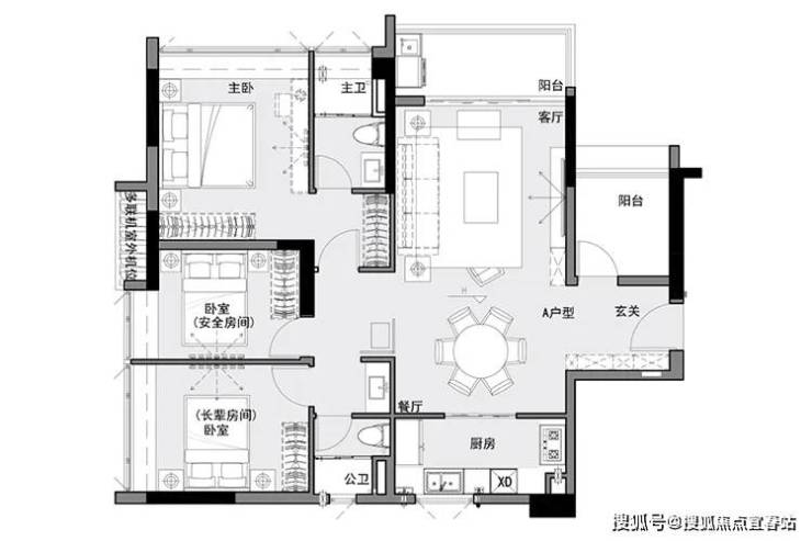 “舒适尺度” 客餐厅4米开间,主卧带衣帽间,U型厨房,公卫干湿分离,格局方正实用,动静分区
