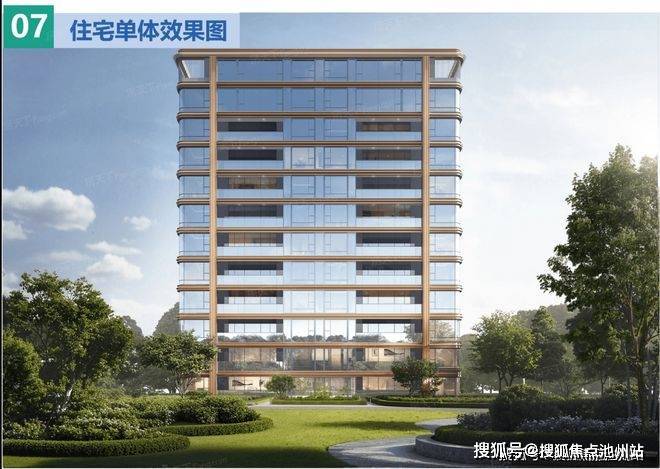建筑立面采用南向铝板+LOW-E玻璃,搭配香槟金色金属线条,整体轻盈现代,充满镜面艺术感。