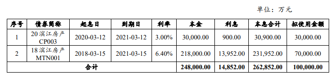 滨江集团表示,本期计划发行中期票据10亿元,全部用于归还发行人存续期债务融资工具本金。具体明细如下: