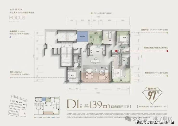 四面铝板 封包阳台 风雨连廊 下沉式会所恒温泳池高层约108m-139m 叠墅约225m