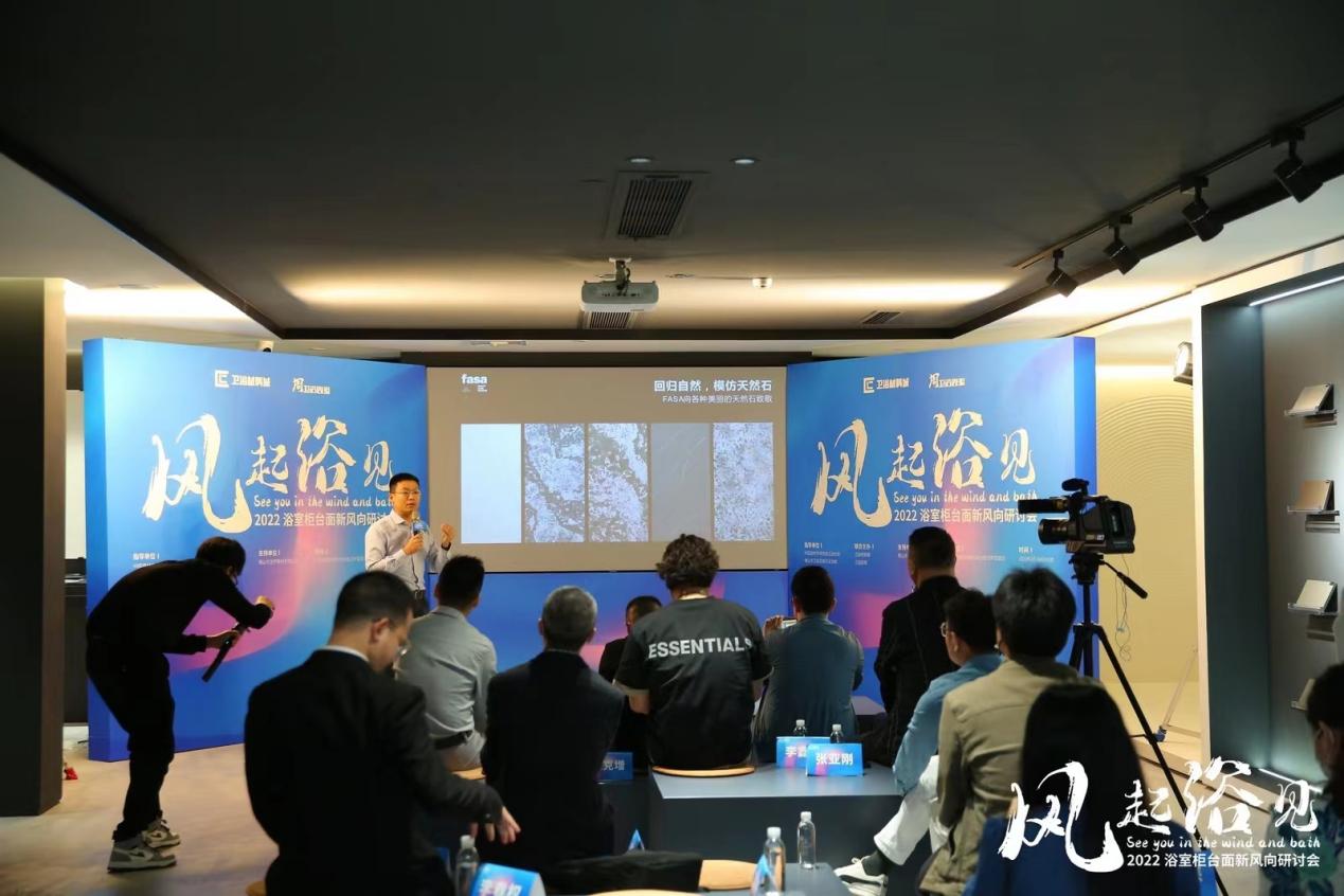 面对未知的市场行情,在这种局势下法萨石侧重于提升自身的经营质量和运营能力,积极跨界联动,3.月26日在法萨国潮馆刚刚结束与卫浴行业联合举办的“风起浴见·2022浴室柜台面新风向研讨会”,美好生活,卫浴先行。