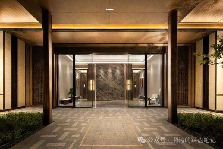 ✅同时在基座上,入户大堂采用高定款的标识景墙和铺装,强调归家仪式感。