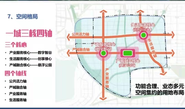 根据规划,丝路软件城将总体呈现出“一城三核四轴”的空间格局。“一城”指丝路软件城,“三核”即打造产业服务核心、生活服务核心、产城融合核心,形成数字智谷、悬浮公园、创享绿心3大地标,“四轴”为公共活力轴、产城融合轴、产业服务轴、生活服务轴。未来,西安高新区将通过推进实施产业升级、五宜社区、公园矩阵、交通畅行、魅力风貌、智慧管理六大行动计划,将丝路软件城打造为一座集国际化、生态化、智慧化,集产业、总部、商业、居住、生态于一体的现代化新城,为各类高端人才创造一个有生活、有温度、有品位的理想之城。