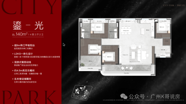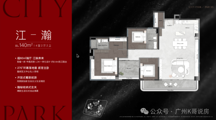 距珠江仅300米,前排无遮挡,属主城稀缺资源。容积率仅3.0,围合式布局保障栋栋观江视野。使用率百分百。