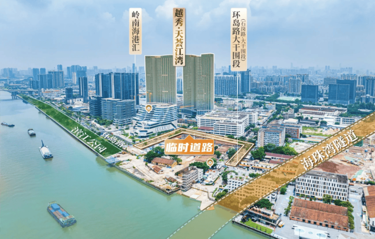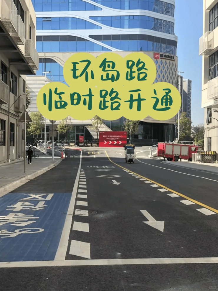 海珠后航道上的环岛路临时路段也已经正式通车,虽然依然要绕行,但绕行距离从1.6公里大幅缩短至500米,通勤时间至少节省一半。