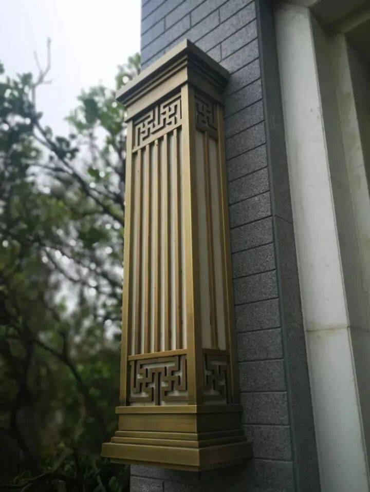 壁灯:院门两侧的铜灯,纹饰由传统的“万字纹”演化而来,寓意万福万寿绵长不尽。