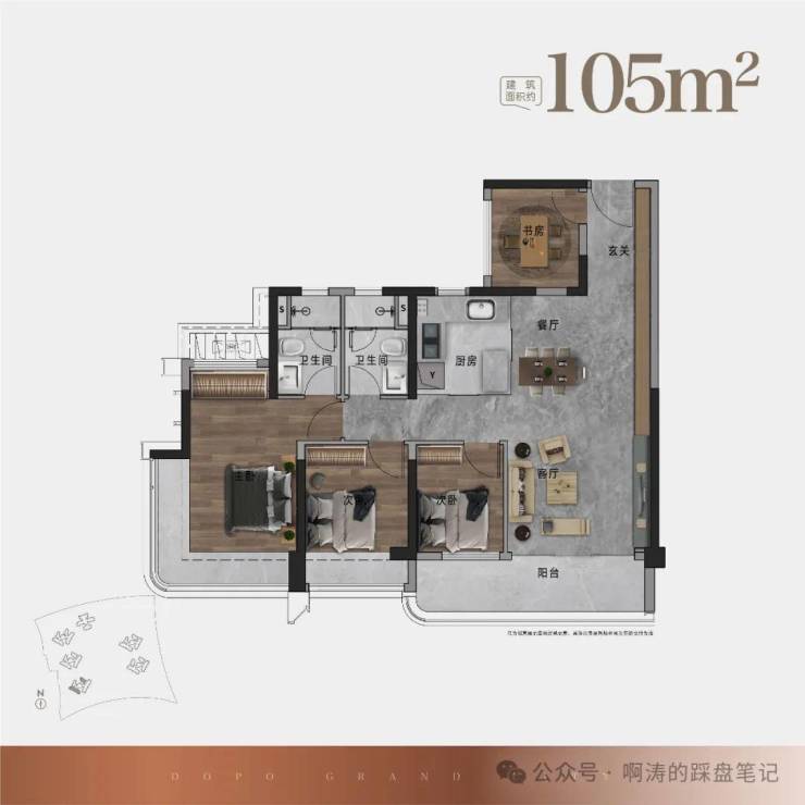 6个户型,朝向分别为:88平朝西北,2个105平朝西南,122平和143平朝东南,还有一个105平朝东北,不分户型大小,全都是3.05米层高