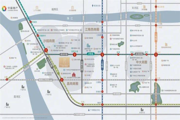 交通出行的便捷性是项目的显著特点,距离地铁 8 号线宝岗大道站 C 出口仅 200 米,步行 3-5 分钟即可进站,从该站出发 1 站能到琶洲电商总部,换乘 2 号线可快速抵达海珠广场、广州南站,通勤效率很高。距离广佛线沙园站约 800 米,步行 14 分钟可达,进一步拓宽了跨区出行范围,方便往来荔湾等地。