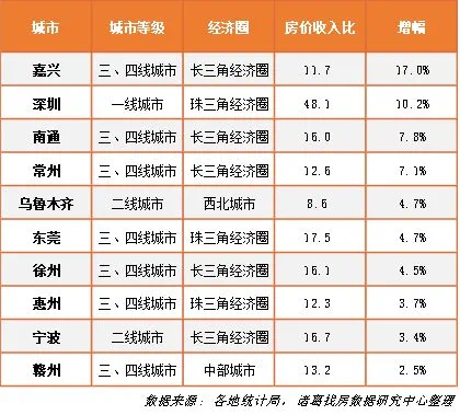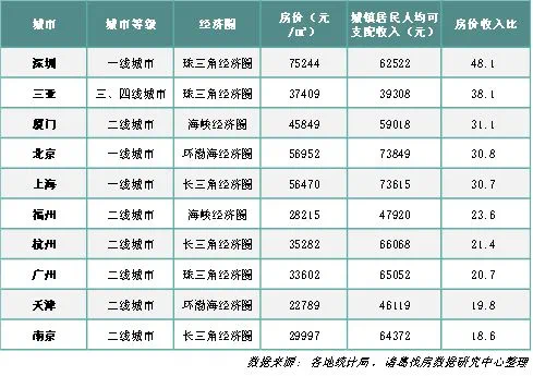 各大经济圈房价收入比具有阶梯性和不均衡性