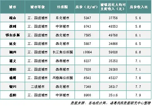 与此同时,西北城市以9.9的房价收入比成为全国较低,中部和西南城市分别为10.2和10.4,相差不大。