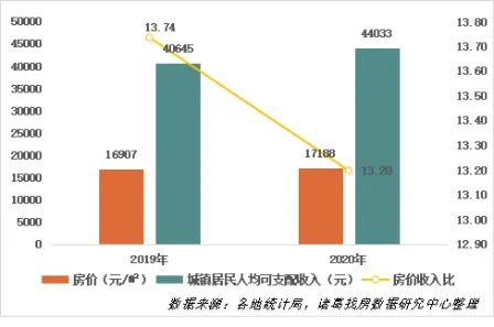 根据诸葛找房数据研究中心监测100个重点城市平均房价收入比情况来看,2019年房价收入比为13.74,2020年房价收入比为13.2,同比下降了3.9个百分点。