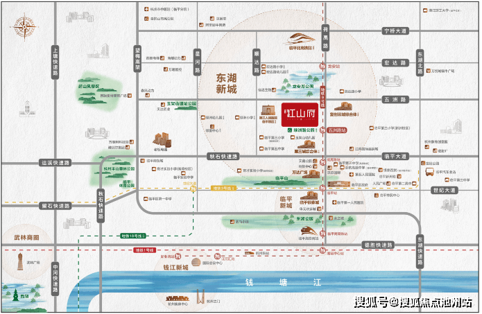 地铁9号线五洲路站100米,无缝换乘1/3(二期在建)/18号线(在建),邻近秋石高架、东湖高架、望梅高架,近揽黄金十字轴线—荷禹路、五洲路,通达全城;临平高铁北站(规划)、沪乍杭铁路,极速融沪,连接长三角。