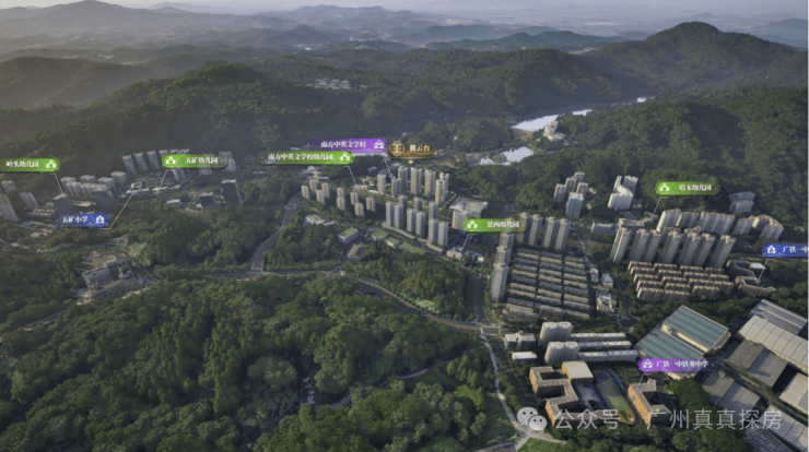 长岭居被定位为广州东部山水新城生态宜居示范区。板块更是以“绿色、低碳、智慧”为理念,构建了一座集高端居住、研发总部、疗养度假、生态休闲、先进制造五大功能于一体的未来之城。很多人提到长岭居,第一印象都是宜居。事实也是如此,在长岭居34.9平方公里的规划建设用地中,约20平方公里被划为法定自然保护区,真正实现了“半山半城”的理想格局。这种富氧山水休闲区,也是广州难以复制的资源。