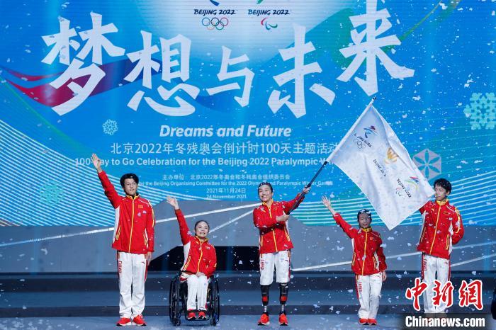 中新网北京11月24日电 (记者 陈杭)24日,北京冬残奥会倒计时100天主题活动在美轮美奂、流光溢彩的国家游泳中心举行。