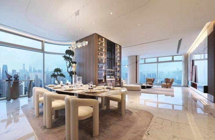 空间尺度:3.8米层高、270度落地玻璃、近200㎡L型奢享会客厅,搭配全套意大利进口家具,兼具大气与优雅1。